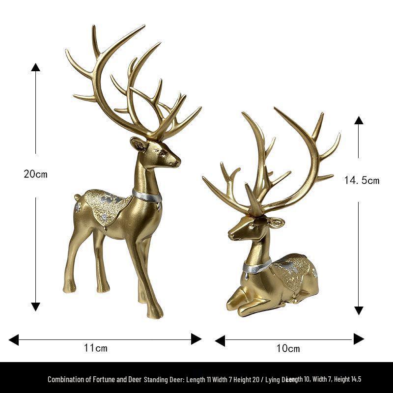 Luxurious Golden Deer Wine Cabinet Ornaments - Elegant Elk Decorations for Living Room, Bedroom, or Entrance Hall.
