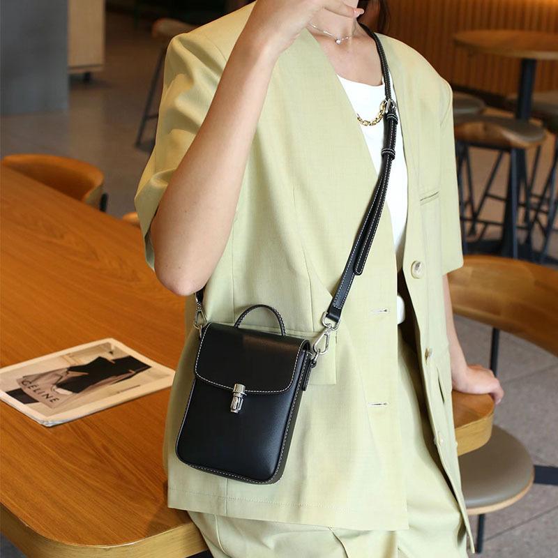 Leather women's bag Korean version fashionable new messenger bag foreign style small square bag portable shoulder bag versatile mobile phone small bag