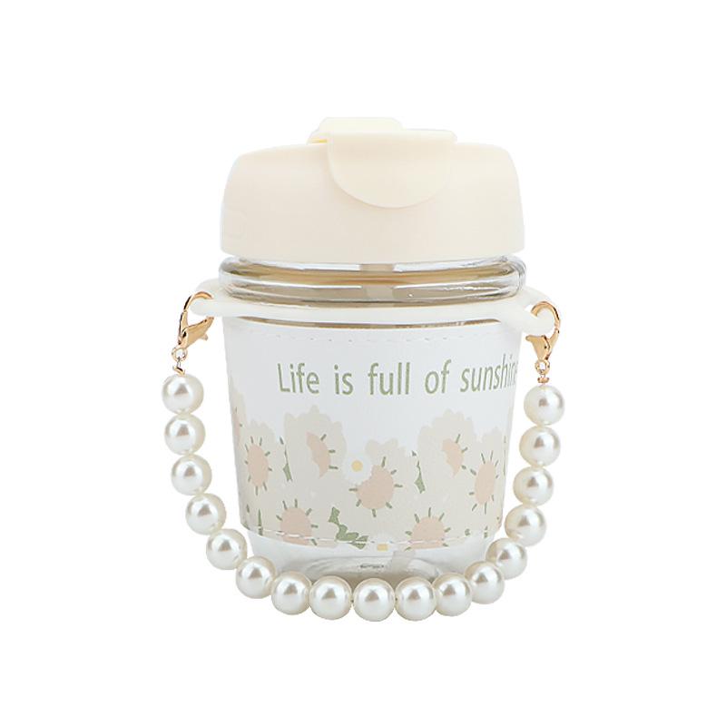 Customizable Pearl Handle Double Wall Tumbler - Aesthetic Daisy Design, Portable Instagram Style Water Cup
