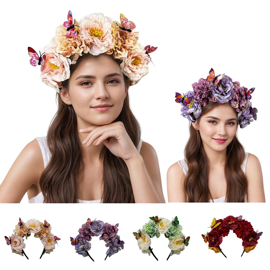 Bohemian Bionic Butterfly Headband Rose Peony Embellishment Holiday Headgear Clothing Accessories
