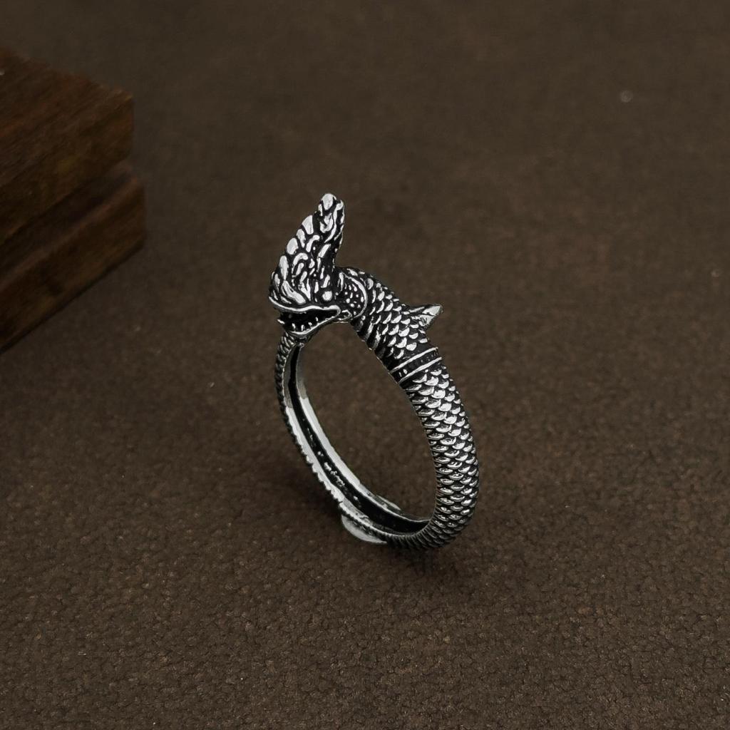 Sterling Silver Dragon Zodiac Ring - Adjustable Unisex Design, 925 Silver Domineering Style.