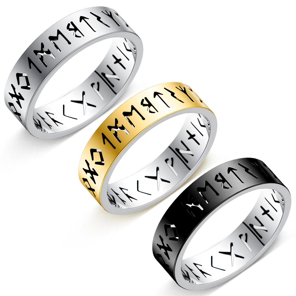 Viking Runes Hollow Out Titanium Steel Ring Unisex Popular Jewelry