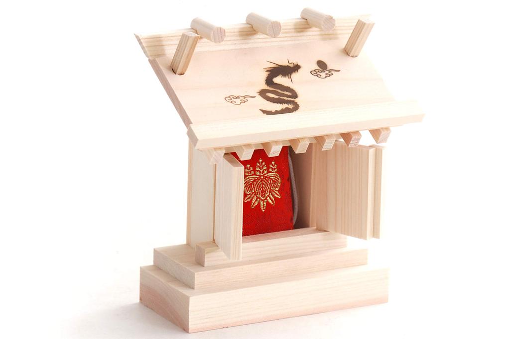 Yamakou Small Shrine Amulet Gifu Cypress Made in for Amulets and Shrines H14 x W12 x Holder, Wood, Japan, (Shrine Body) D6.5 (cm) (Cloud Dragon)