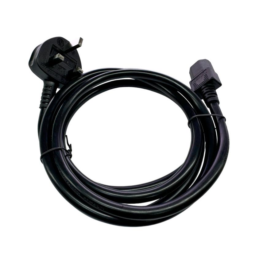 UK 13A Moulded Plug Cord, 3-Core 1.5mm² Pure Copper, 2M Black Cable, 13A Fuse, C13 Connector