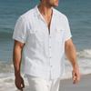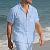 Summer New Short-sleeved Men's Double Pocket Solid Color Loose Casual Lapel Shirt