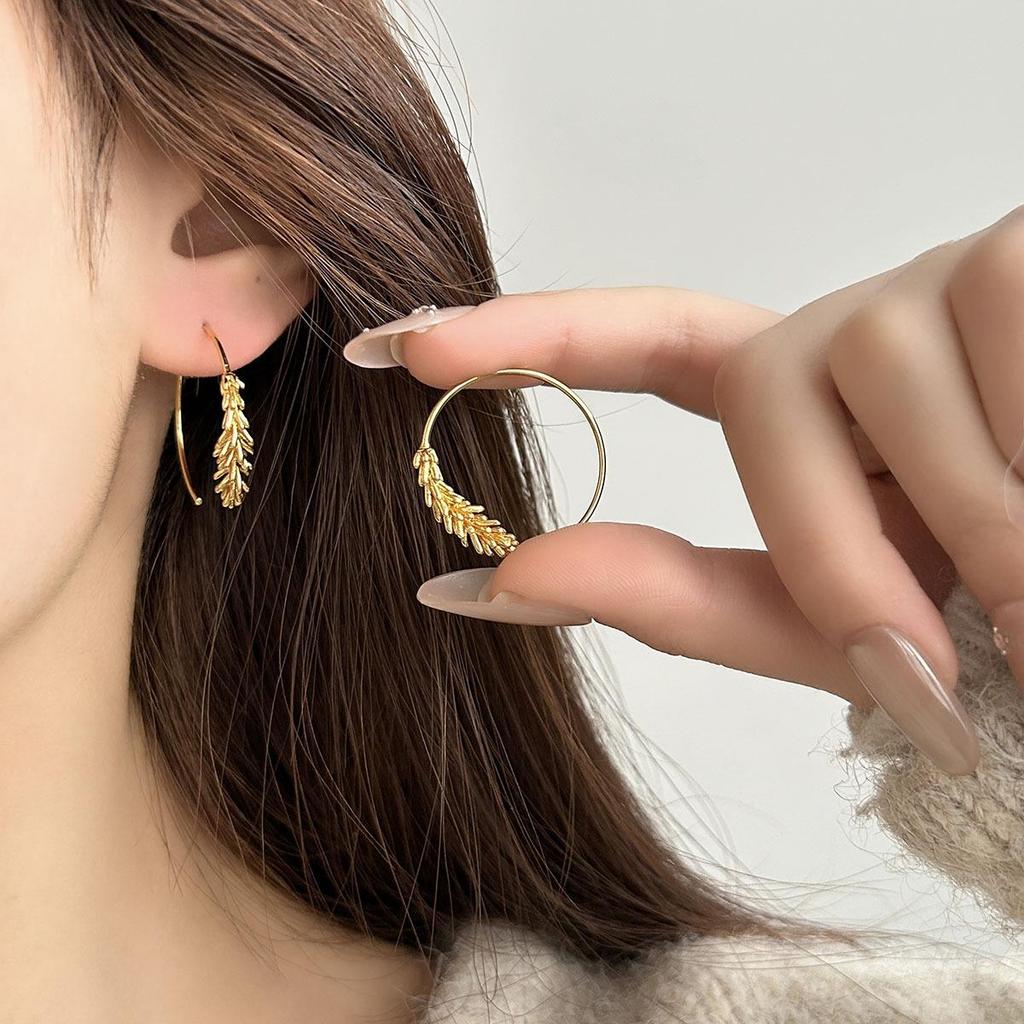 2025 High-End French Wheat Ear Hoop Earrings for Women: Elegant, Versatile, Fashionable Jewelry