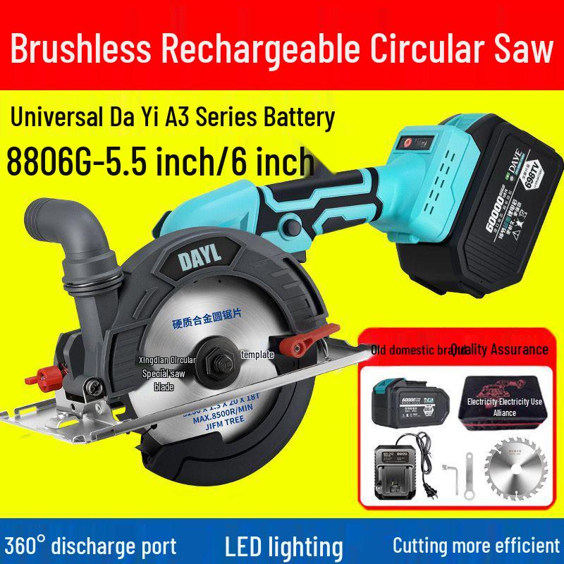 High-Power 6-Inch Brushless Circular Saw - Lithium Battery Stone/Woodworking Electric Handheld Cutter