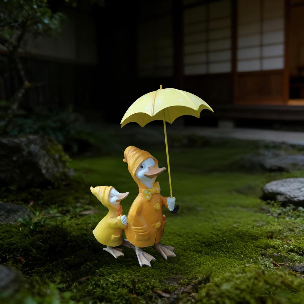 - 【Adorable Duck Mother Child Statues】: This adorable resin duck mother child statue wearing a raincoat and holding an umbrella happily in your outdoor garden, filling space with fun. Say goodbye to monotony and add a touch of joys to your garden