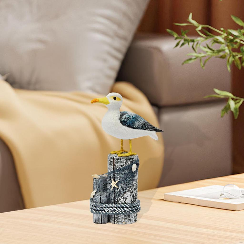 Seagull Figurine Wooden Coastal Ornament Rustic Beach Themed Bird Statue for Table Bedroom Office