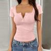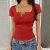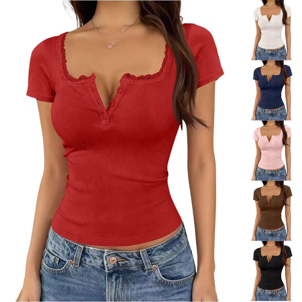 Women's Spring And Summer Lace Button V-neck Fashion Short Sleeve Top