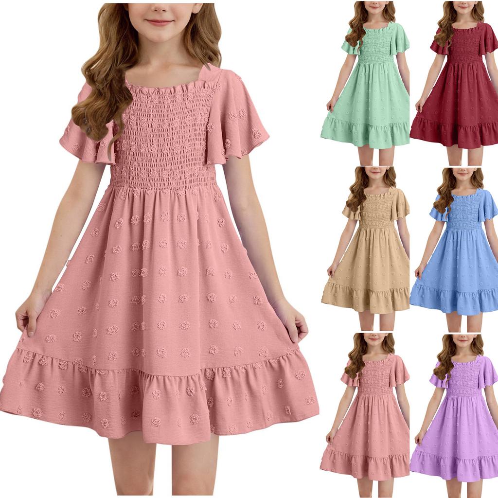 Girls' Square Neck Ruffle Dress - Short Backless Summer Frocks