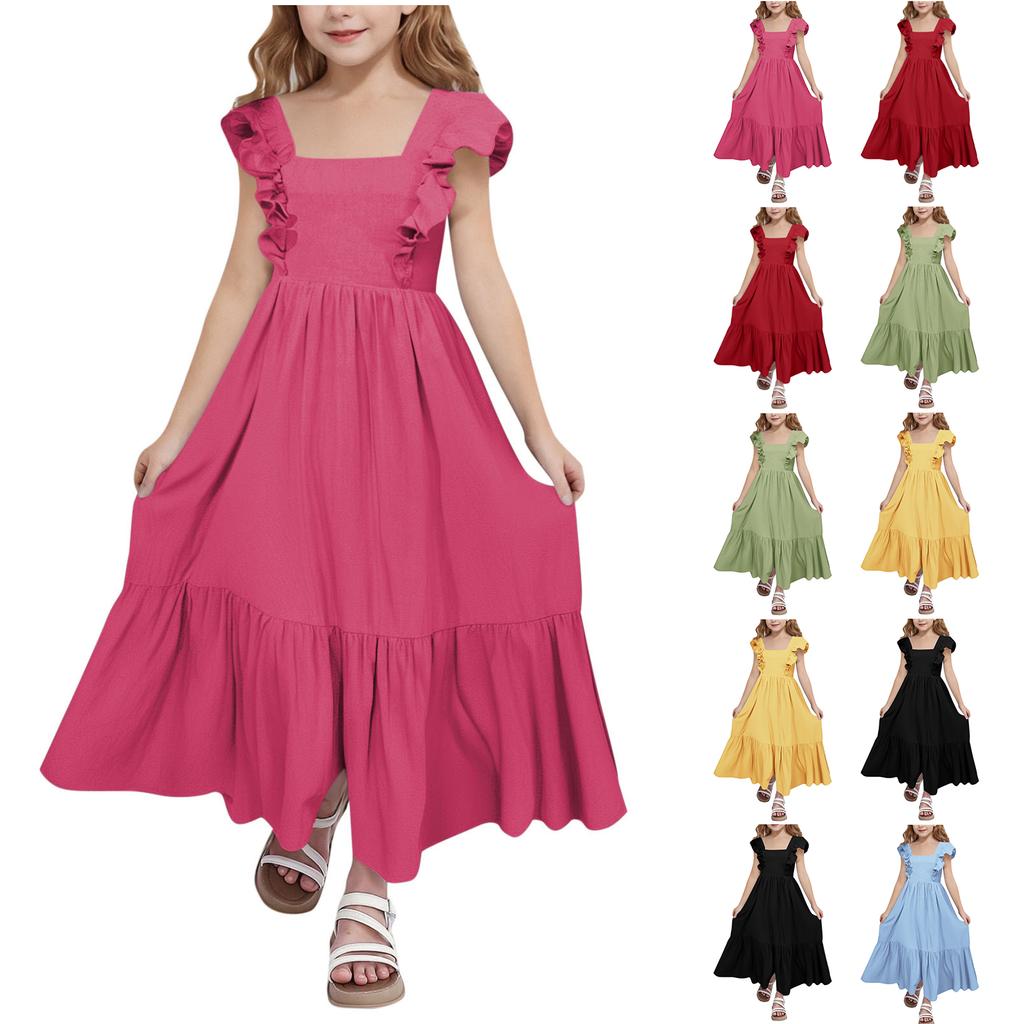 Girls' Square Neck Dress - Sweet Backless Sundress