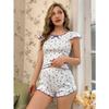 Women's Spring Floral Patchwork Pajama Set - Mushroom Hem Top & Shorts.