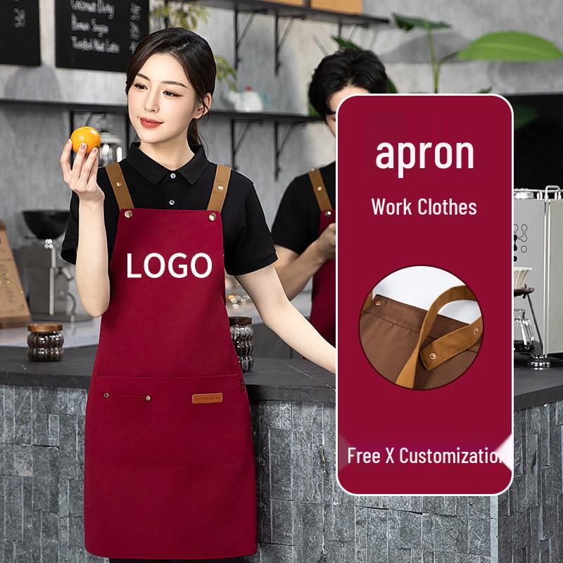 Red Catering Apron - Waterproof & Oil-Proof, Customizable Logo & Text, Wide Double Shoulder Straps, Ideal for Kitchen & Baking Work.
