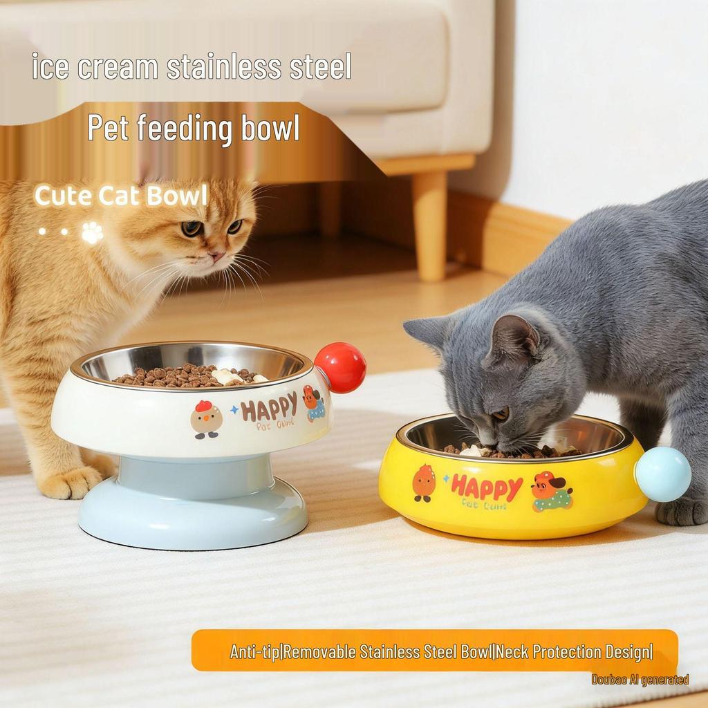 Stainless Steel Non-Slip Dog Bowl with Anti-Tip and Neck Protection, Prevents Black Chin, for Small Dogs.