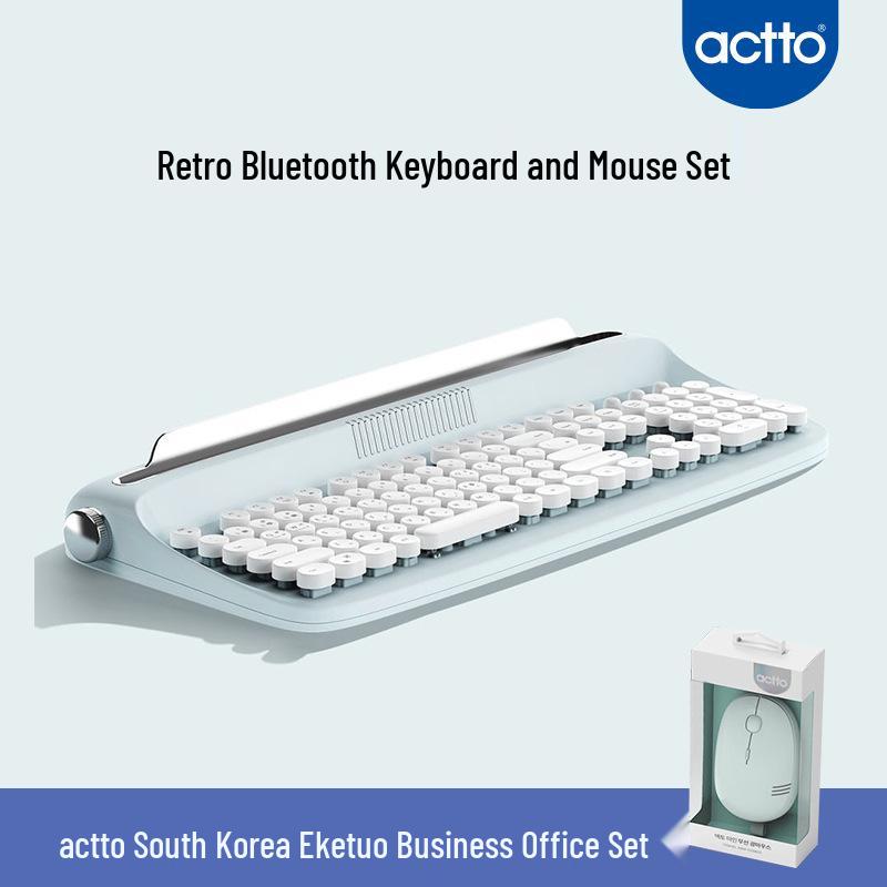 Actto Retro Bluetooth Typewriter-Style Keyboard & Mouse Combo for Business Office (104-Key)