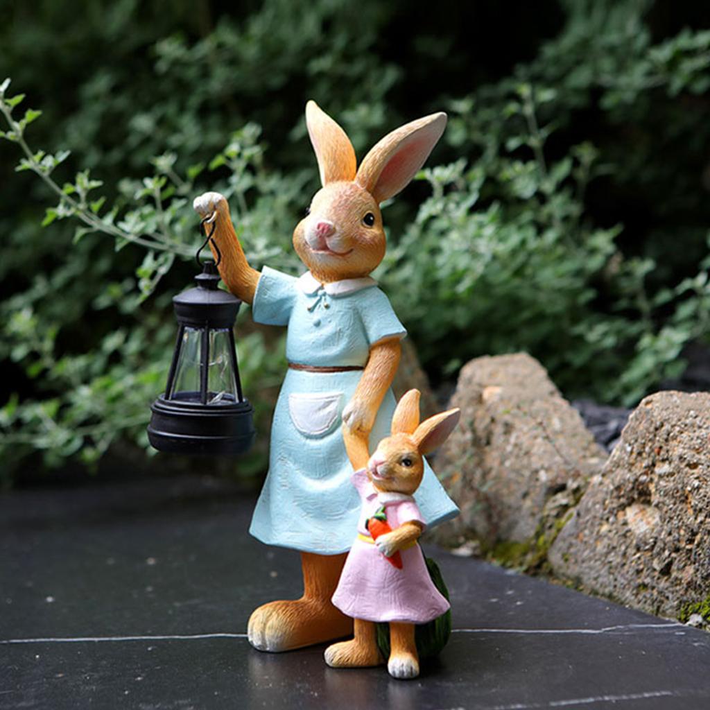 Resin Rabbit Garden Ornament with Solar Lantern Cute Rabbit Animal Ornament for Xmas Party Outside Patio Yard Lawn Porch Decor