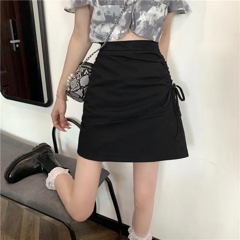 Women's Slim Fit Black Ruched Drawstring Mini Skirt