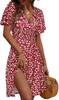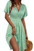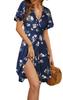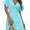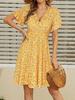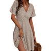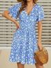 Summer Floral Short Sleeve Wrap V-Neck A Line Midi Dress