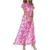 New beach pendulum long dress chiffon floral short-sleeved ruffle V-neck fashionable waist dress