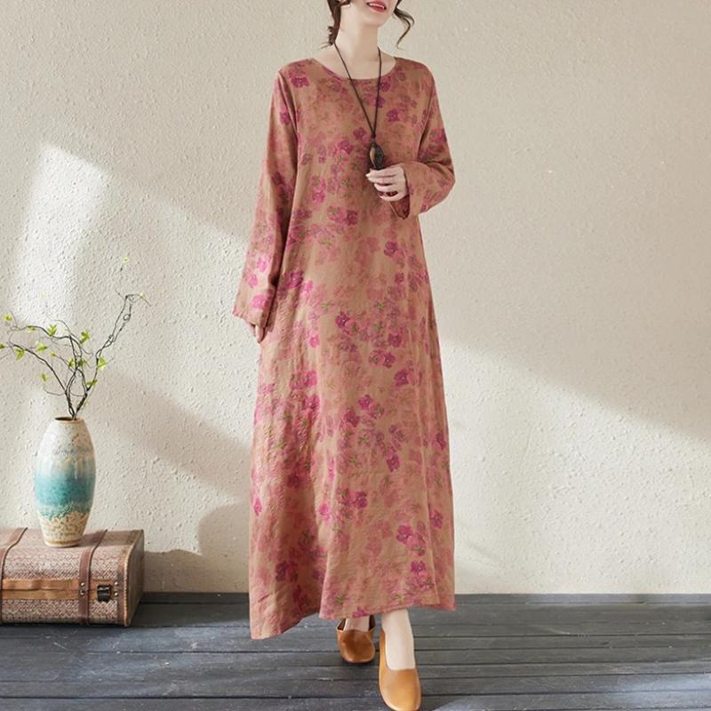 Spring Cotton Vintage Long Sleeve Print Dresses For Women Casual Loose Dress Femme Robe Vestidos Elegant Clothing
