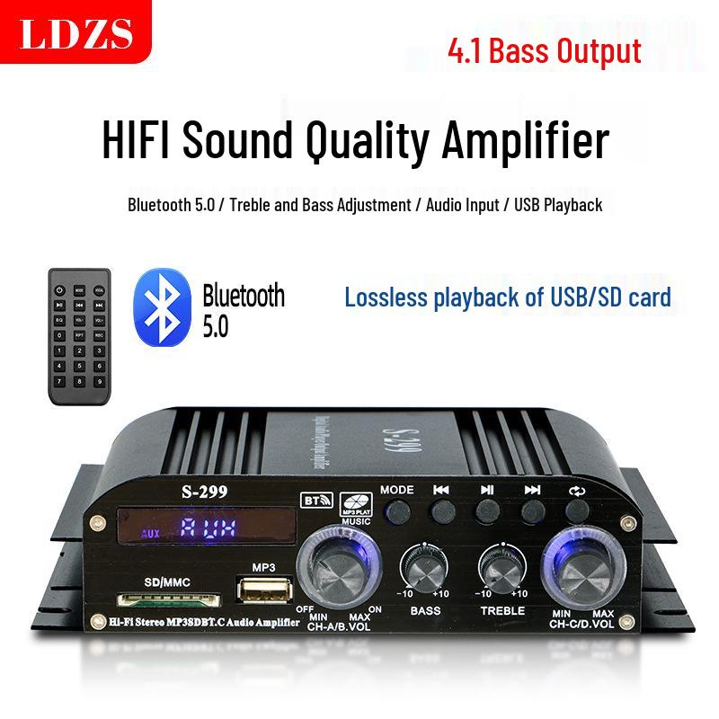Bluetooth 4.1 Channel Professional Power Amplifier with USB & Card Slot for Home/Car - Super Bass