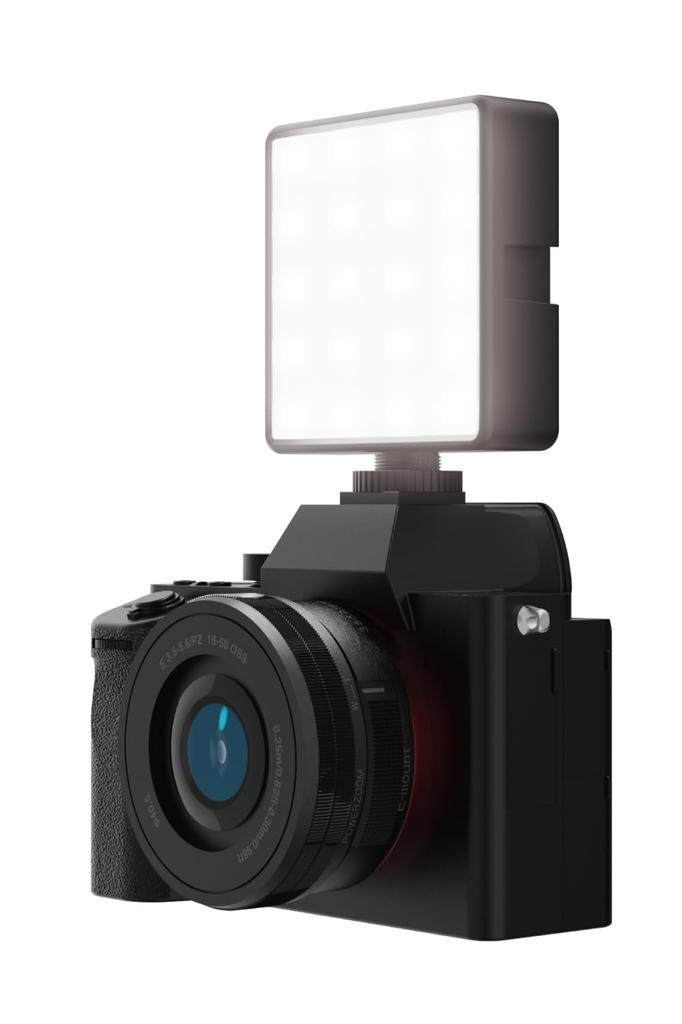 This is a constant-function light that can be attached to a digital camera or tripod to provide bright illumination. It can be used for video streaming, online meetings, online learning, web interviews, etc. It is a compact, approximately 8cm square type and has a built-in battery, so it can be used in places without a power source. In addition to being able to connect to the accessory shoe of a digital camera, this product and microphones can be further attached to the top and both sides of this product. It is equipped with a 1/4-inch screw hole, so it can also be attached to a tripod. It offers three color temperature options: daylight, warm white, and cool white, and five levels of brightness adjustment.