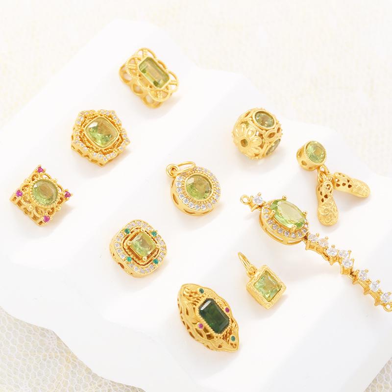 S925 Sterling Silver Inlaid Natural Peridot Diopside Loose Beads Spacer for DIY Bracelet Necklace T7