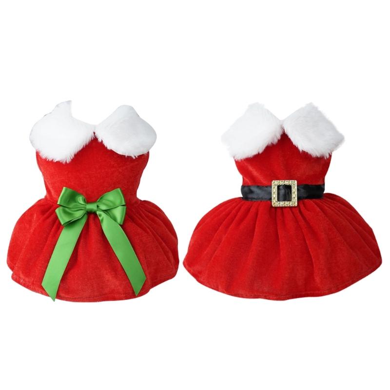 Pet Dog Clothes Christmas Costume: Our pet dog dress clothes Christmas costume use skin friendly warm pleuche material and elegant design, perfect for you dress your small pet cats or dog on Christmas day, party, and stage show.