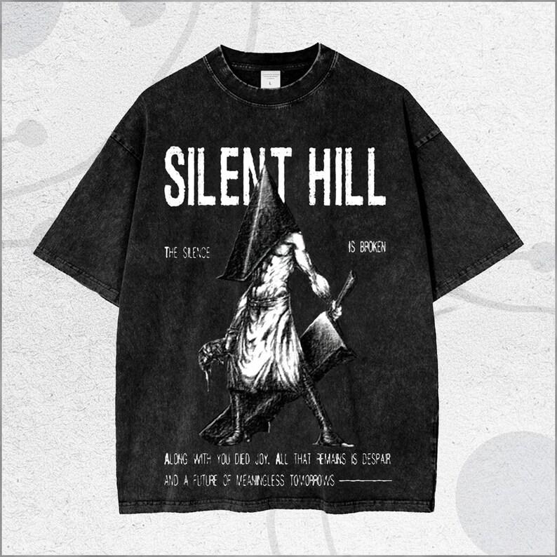 Silent Hill Pyramid Head Vintage Washed Horror Game T-Shirt, Unisex Psychological Horror Fan Streetwear Tee, 100% Cotton Casual Short Sleeve Top