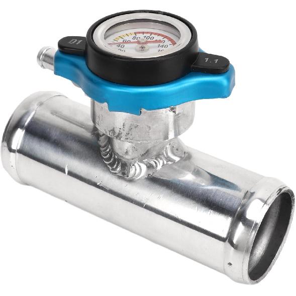 in Line Radiator Hose Filler Neck , Radiator Coolant Filler, Radiator with T Branch Water Pipe Kit, 38mm 1‑1/2in OD with Temp Display T6061