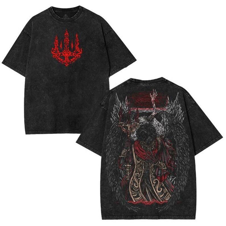 Elden Ring Mohg Lord of Blood Bloody Dynasty Emblem Vintage Washed Game T-Shirt, Unisex Soulsborne Fan Streetwear Tee, 100% Cotton Casual Short Sleeve