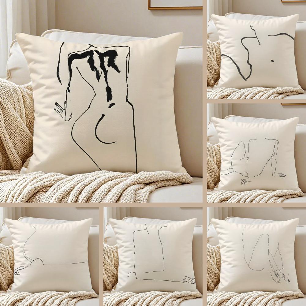 Sexy Sample Line Body Anime Cartoon Cushion Cover Pillowcase Antidustmite Invisible Zipper Short Plush Sofa Cushion
