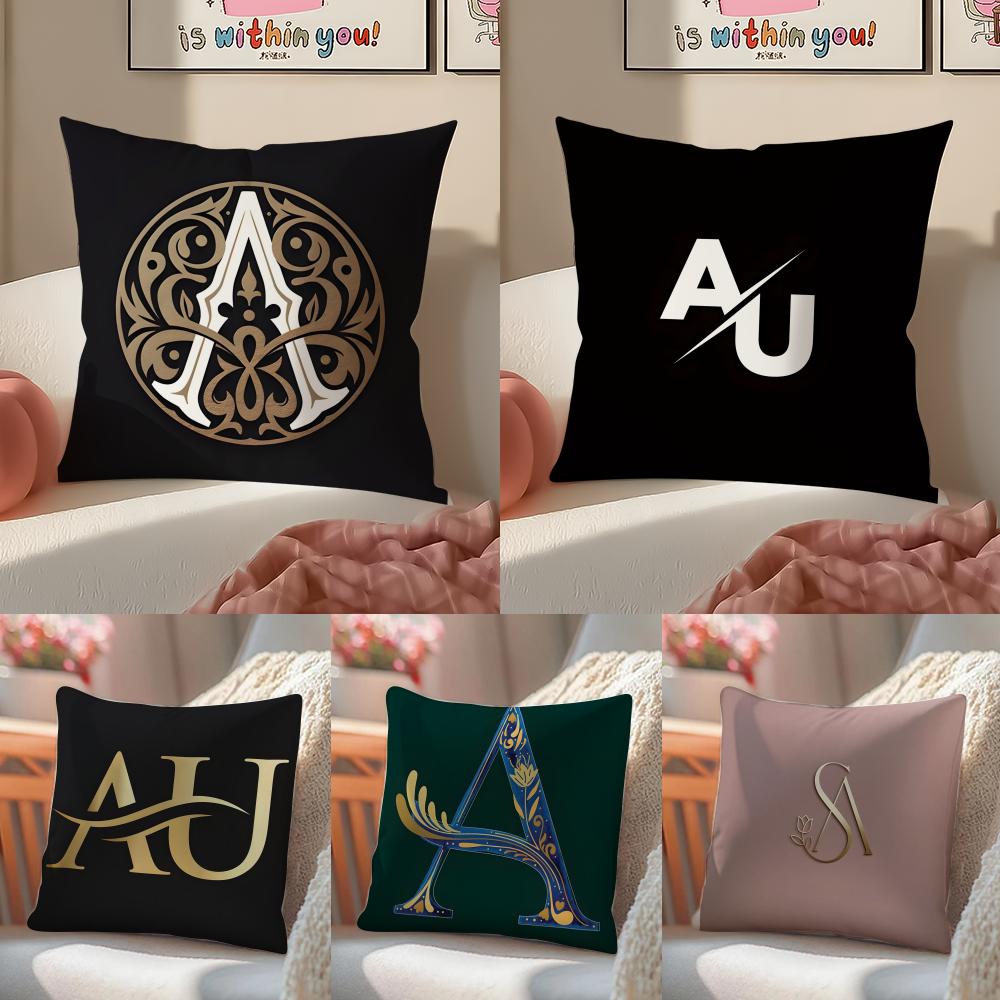 Simple letter Design AU Cushion Cover Pillowcase Short Plush Invisible zipper Room Sofa Cushion Cover