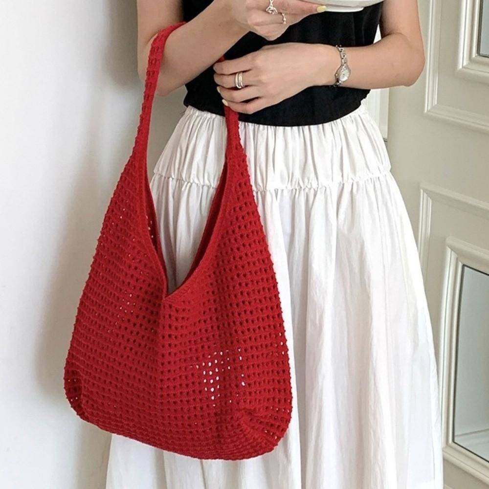 Bohemian Style Knitted Shoulder Bag Large Capacity Woven Handbag Crochet Mesh Tote Bag Shopping