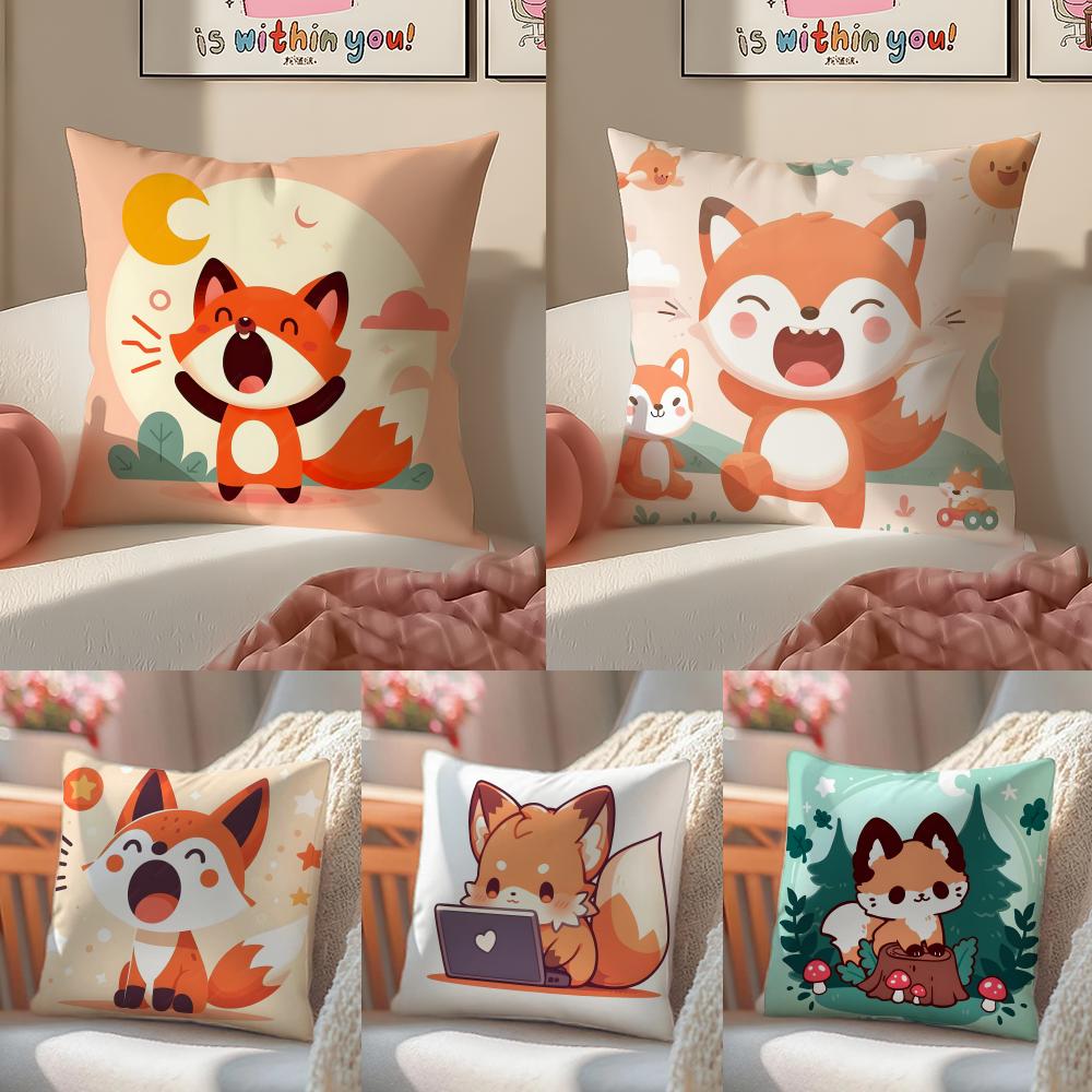 cute animal FFlat Foxes Cushion Cover Pillowcase Short Plush Invisible zipper Room Sofa Cushion Cover