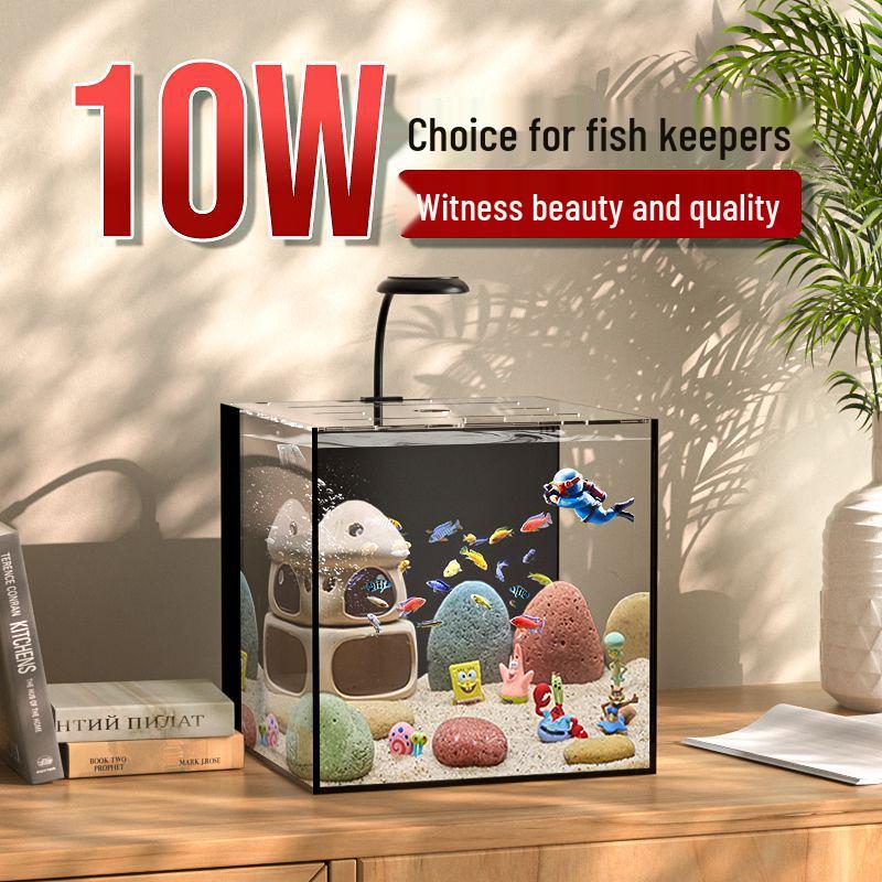 Compact Ultra-White Glass Fish Tank with Back Filter - Minimal Maintenance Desktop Aquarium for Goldfish