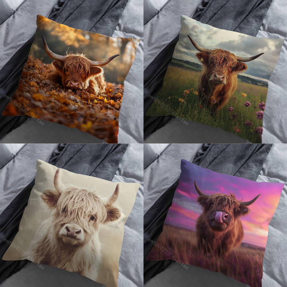 Cute Small Highland Cow Various Sizes Square Pillow Case For Car Home Bedchamber Decor Birthday Gift