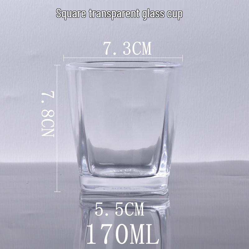 Set of 6 Transparent Square Glasses: Wine, Whiskey, Beer, Water - Thick Tempered Glass Cups