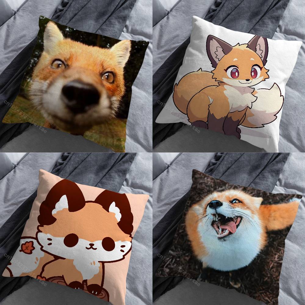 Cute Fox Animal Expression Throw Pillow Case Living Room Sofa Cushion Cover For Home Bedroom Decoration Protector