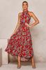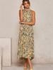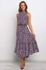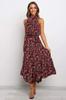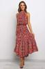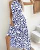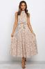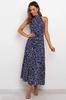 Women's long dress popular new neck polka dot printing lace-up dress