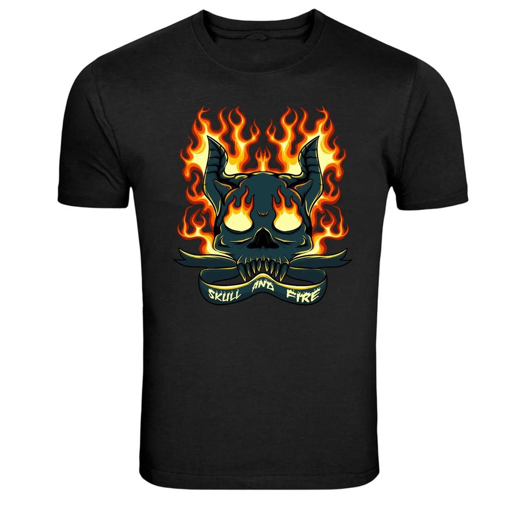 Skull and Fire Flaming Demon Graphic T-Shirt