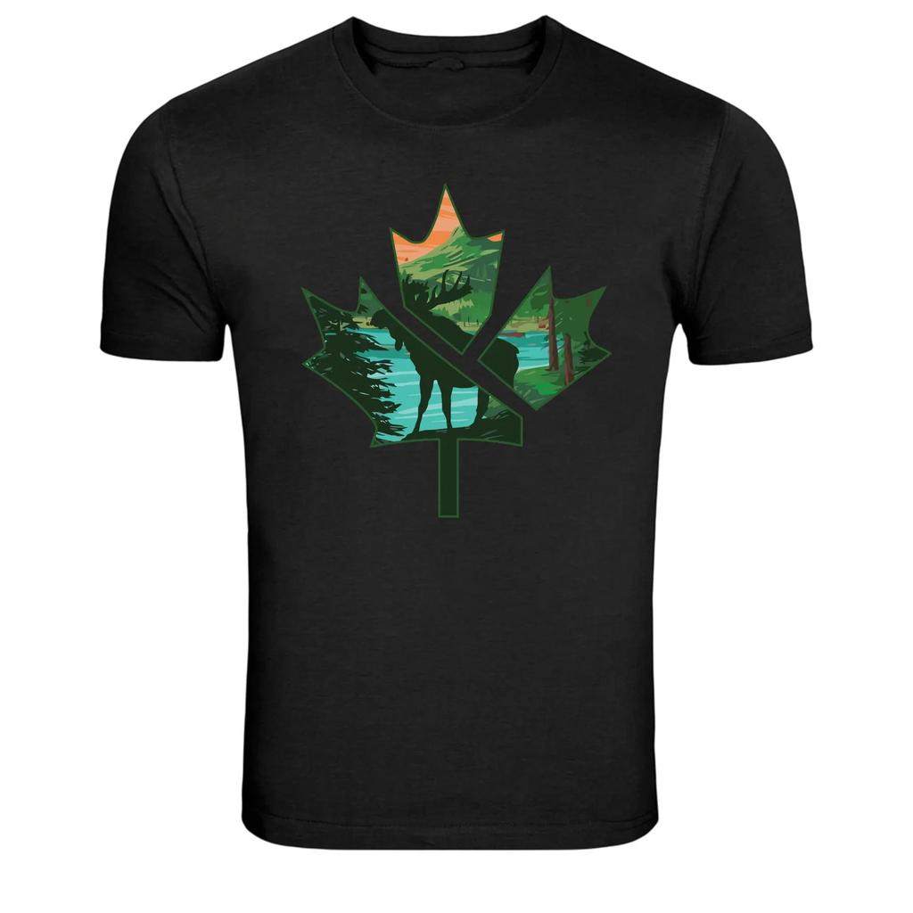 Canada Maple Leaf Moose Nature Landscape Graphic T-Shirt