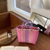 Vegetable Basket Summer Fashion PVC Handbag Hand Woven Bag Patchwork Striped Tote Beach Bags Purses and Handbags
