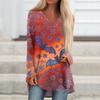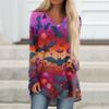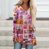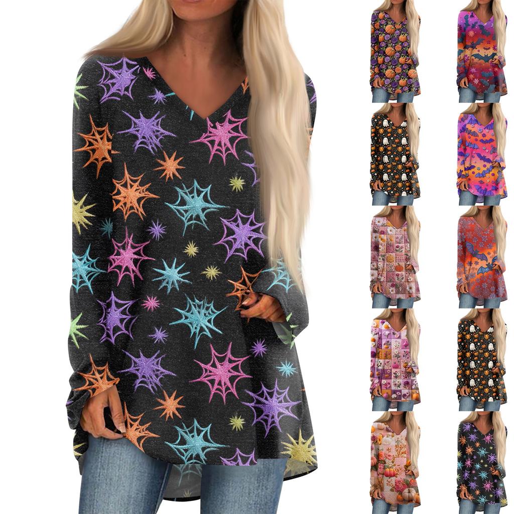 Ladies' Fashionable And Casual Halloween Printed T-shirt Long Sleeved V-neck Mid Length Top