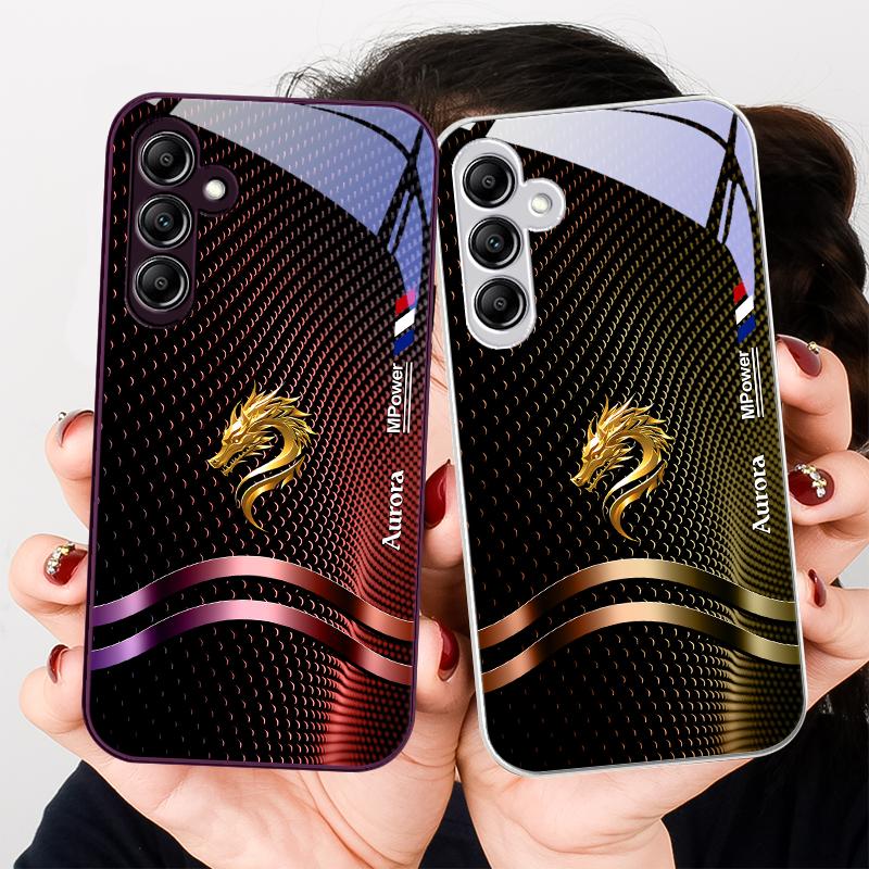 Glass Phone Case For Samsung Galaxy A01 A02 03 Core A04 A14 4G A13 A54 34 31 20 25 23 22 5G S21 Ultra S20 Blue Golden Dragon