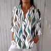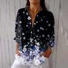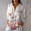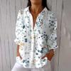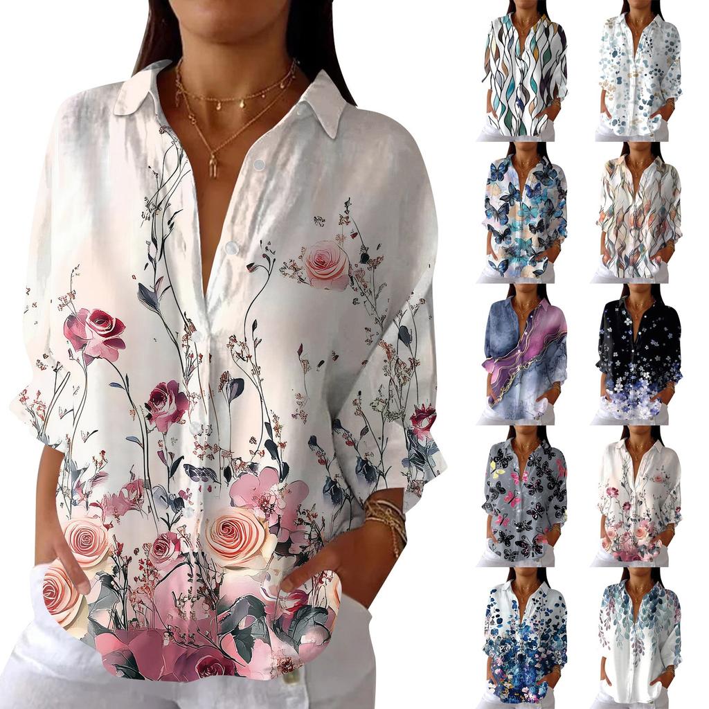 Women's Fashion 3/4 Sleeve Casual Lapel Back Tie- Floral Print T-Shirt Top