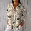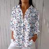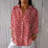 Women's Fashion Seven Sleeve Casual Lapel Back Tie Shirt Printed T-Shirt Top
