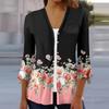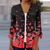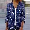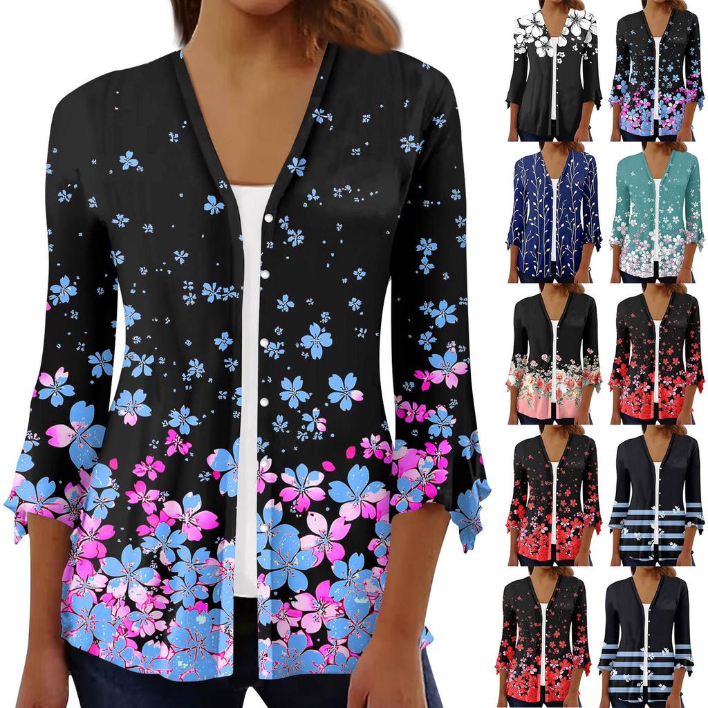Women's Fashion Loose Casual Printed Seven-Part Sleeve Button Down Blouse Cardigan Top