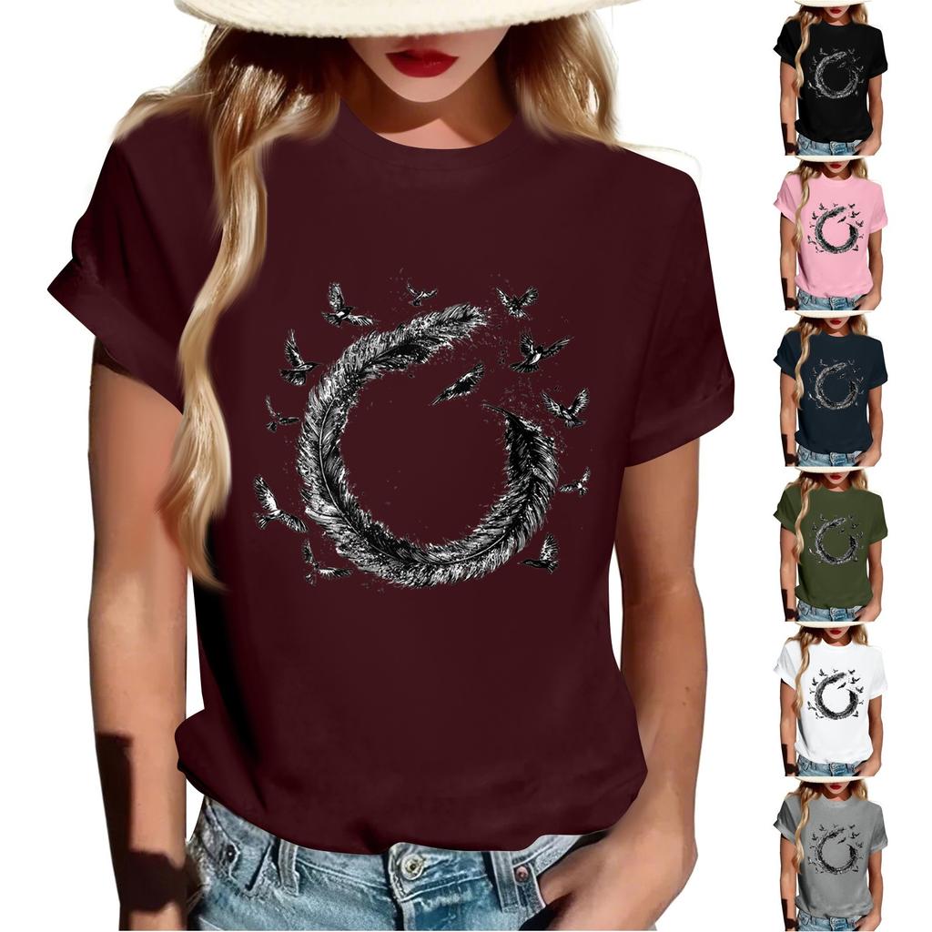 Women's Fashion Casual Printed Short Sleeve Round Neck Pullover Tops